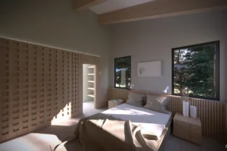 In Japanese, Sasayaki Matsu means “Whispering Pine” – a fitting name, chosen by the Client, for this quiet and cozy retreat among the trees in Hokkaido. The exterior is intended to be Shou Sugi Ban timber, with the balcony area accented with natural finish timber. The material choice is aligned with the Client’s theme and tie it back to the local natural surroundings.