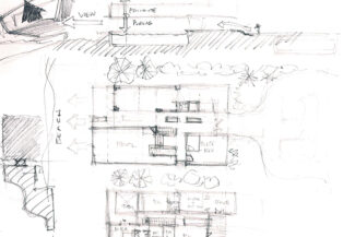 The elevated concrete box provides the private living quarters while the ground floor spaces are set for entertaining indoors and out. With a guest room on the ground floor it also serves as the perfect vacation property.