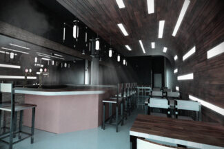 De Luna Bar and Restaurant is located in Mong Kong in Kowloon, Hong Kong. This small unit size is typical of the area and so the efficiency of the floor plan is the main driver of the design.