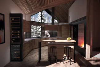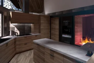 The Origami House is a three-bedroom, 3.5-bathroom home that features a variety of luxurious features. The house has a spacious open-plan living area with a fireplace and floor-to-ceiling windows that offer stunning views of the surrounding mountains and valleys. The house also has a fully equipped kitchen, a dining room, and a full basement for entertainment and study.