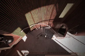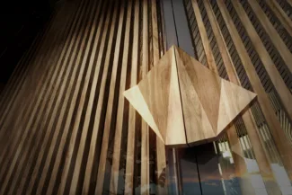 Folded Planes Propped Up By Shou Sugi Ban Inclined Walls