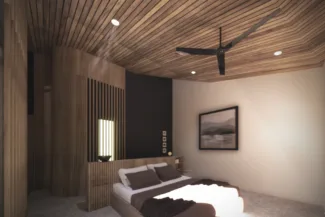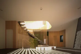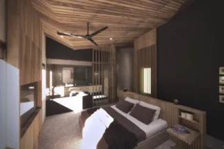 With Griffin House the client came to us with a layout they wanted to incorporate into the Design of their home in Niseko, Hokkaido, Japan. Some adjustments were made to improve the layout and the concept design of the exterior and main spaces of the interior was developed from this. The site lies adjacent to one of the Yuki No Taki dwellings also designed by STE-AD.